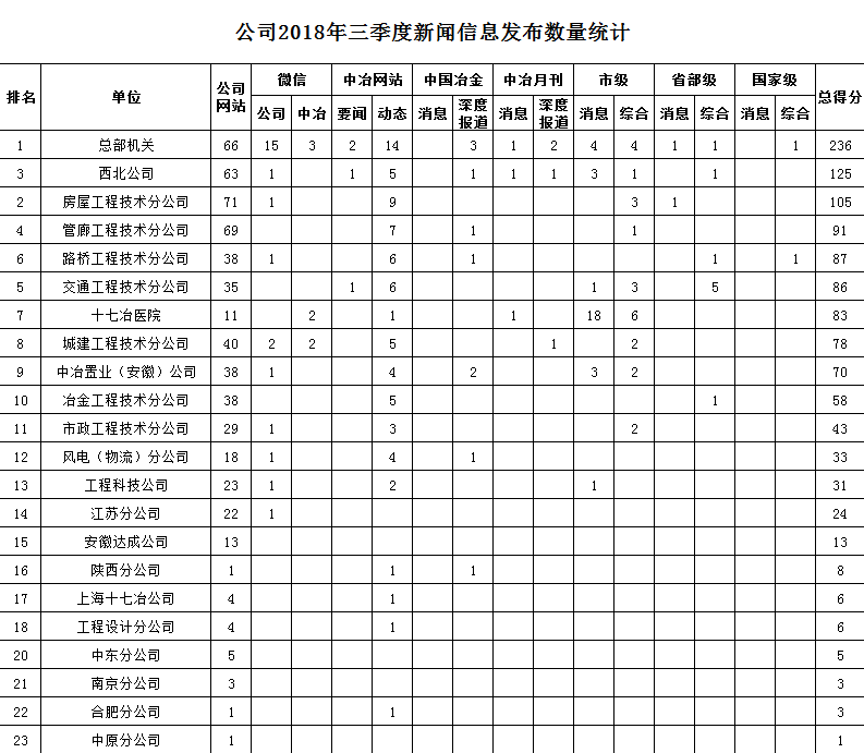 公司2018年三季度新聞信息發(fā)布數(shù)量統(tǒng)計