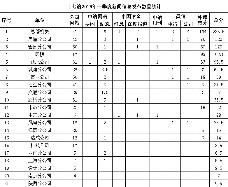 2019年一季度新聞信息發(fā)布數(shù)量統(tǒng)計