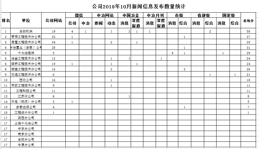 公司2018年10月新聞信息發(fā)布數(shù)量統(tǒng)計(jì)