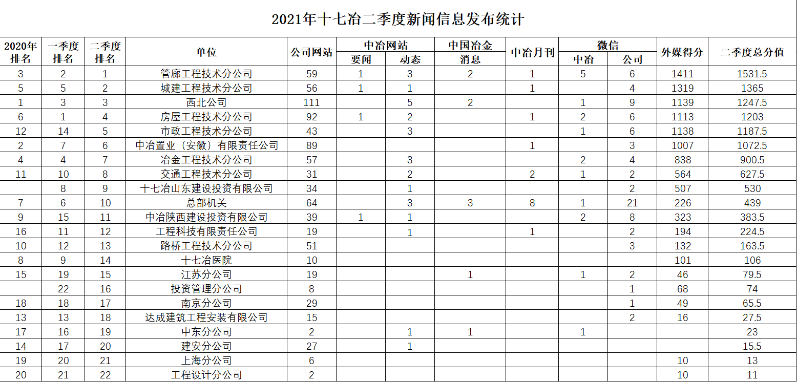 2021年二季度新聞信息發布數量統計