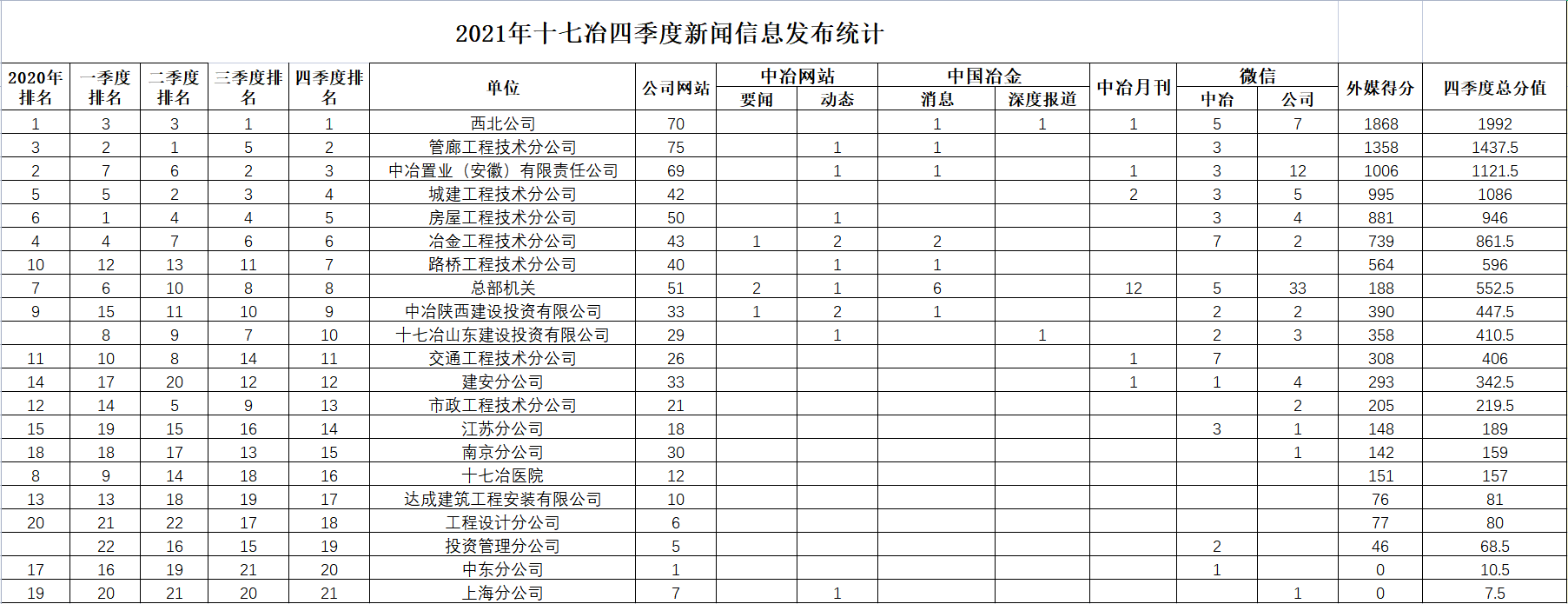2021年四季度新聞信息發布數量統計