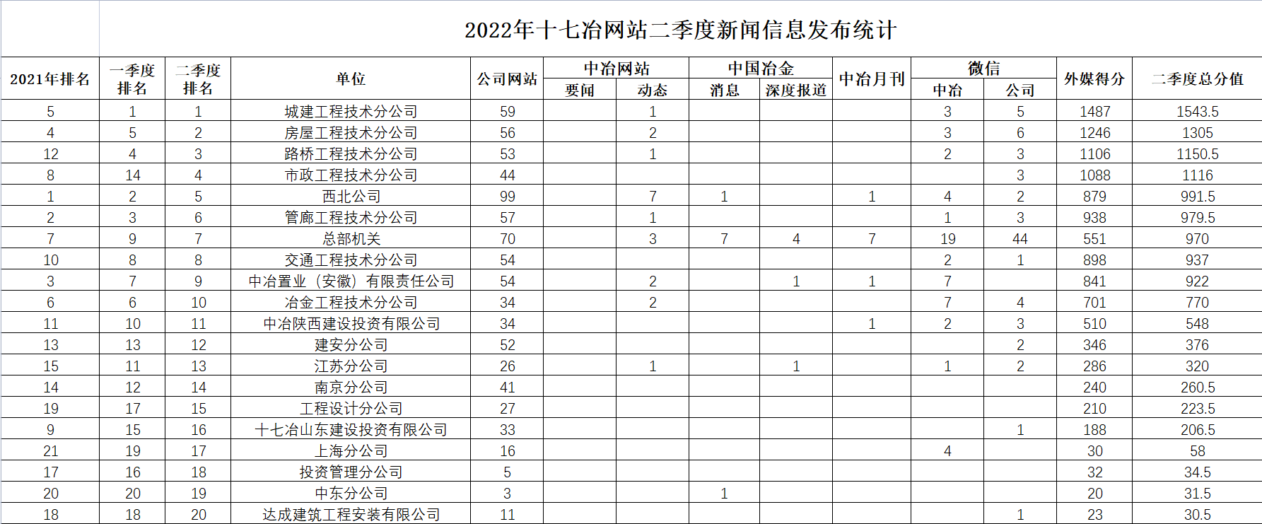2022年二季度新聞信息發布數量統計