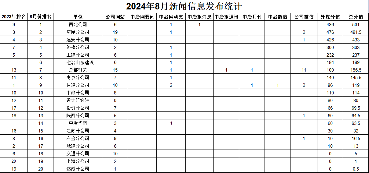2024年8月新聞信息發(fā)布統(tǒng)計