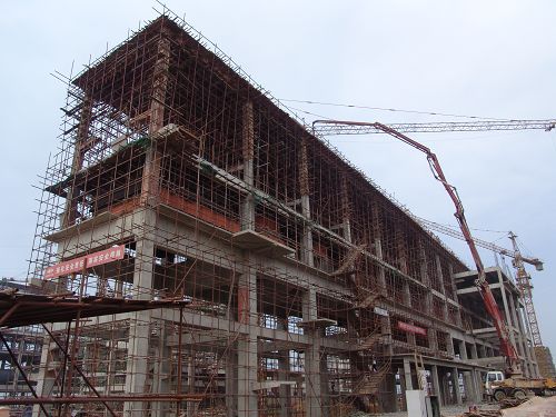 配料室是長(zhǎng)154.5m、寬8.5m鋼筋砼框架結(jié)構(gòu),是華菱湘鋼二燒工程配料系統(tǒng),也是土建工程量最大的單位工程。主體結(jié)構(gòu)層樓面標(biāo)高為:+7.9m、+13m、+18m、+26.6m。共有52根礦架柱組成。軌頂標(biāo)高+25.3m,17個(gè)鋼結(jié)構(gòu)礦槽,礦槽斜段上口標(biāo)高為13m,直段上口在18m平臺(tái)梁底,附跨寬度6m.施工難度大,工期緊,穿插、交叉施工多,危險(xiǎn)源多。為確保安全、促進(jìn)度、抓質(zhì)量保工期,項(xiàng)目部秉承艱苦奮斗、誠(chéng)實(shí)守信的精神,發(fā)揚(yáng)高效嚴(yán)謹(jǐn)、精細(xì)務(wù)實(shí)的企業(yè)作風(fēng)。進(jìn)行了認(rèn)真地分析編制施工計(jì)劃,落實(shí)安全制度,責(zé)任到人,調(diào)整勞動(dòng)力資源和工機(jī)具,合理安排作業(yè)時(shí)間,經(jīng)過(guò) 4個(gè)多月的緊張施工,提前10天實(shí)現(xiàn)配料室結(jié)構(gòu)封頂,為后序設(shè)備安裝創(chuàng)造條件,在質(zhì)量、安全、文明施工等方面,受到甲方的稱贊。