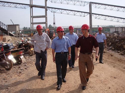 72日,康承業董事長在公司副總經理尹似松,公司董事會秘書、總經理(法務)助理湯小建,公司駐項目部代表徐兆平,水泥公司經理曹永忠,機電公司經理唐克斌等領導的陪同下,風塵仆仆地來到樅陽海螺四期工程施工現場進行視察。