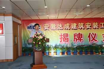 方曉利副市長代表馬鞍山市政府向安徽達成建筑安裝有限公司的掛牌成立表示熱烈的祝賀!他在講話中說,面對國際金融危機的巨大沖擊及復雜多變的國內外環境,十七冶全體干部職工通過艱苦努力,上半年主要經濟指標均超了歷史最好水平。特別是通過工程承包帶動了勞務輸出,也帶動了我市的外貿出口,形成了全市外貿的新亮點,展示了公司新形象,為我市的經濟發展做出了重要貢獻。
