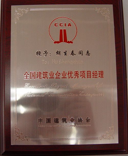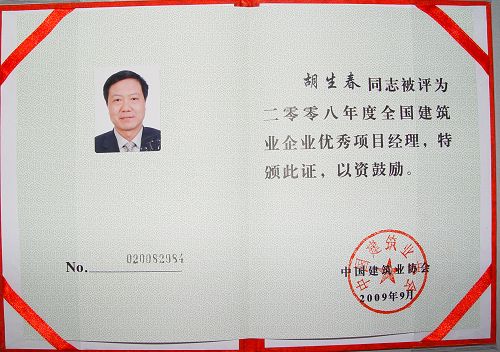 9月8日-9日,第8屆中國國際工程項目管理高峰論壇暨全國建筑業(yè)企業(yè)優(yōu)秀項目經(jīng)理表彰大會在山東省濟(jì)南市召開。十七冶裝備制造公司經(jīng)理胡生春榮獲“2008年度全國建筑業(yè)企業(yè)優(yōu)秀項目經(jīng)理” 稱號,受到中國建筑業(yè)協(xié)會的表彰。