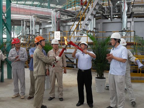 8月18日上午8:28,湖北新冶鋼集團有限公司總經理錢剛用火種點燃了273無縫鋼管廠環形加熱爐,至此,273無縫鋼管廠環形加熱爐烘爐正式開始。 湖北新冶鋼273無縫鋼管工程自2008年11月26日主廠房土方開工,2009年2月6日設備基礎及安裝工程土建開工,十七冶湖北新冶鋼項目部及全體參戰隊伍,戰嚴寒、冒風雨、斗酷暑,克服重重困難,歷時近9個月的時間,實現了主廠房封閉,設備基礎完工,主體設備全部就位找正,介質能源管道全部貫通,試壓、沖洗完畢。熱軋區電器安裝、電纜敷設接線完成。 隨著環形加熱爐順利點火烘爐,標志著由中國十七冶施工總承包的273無縫鋼管工程從管坯區、穿軋區至管排鋸、精整區已全面進入單機試車階段。