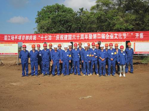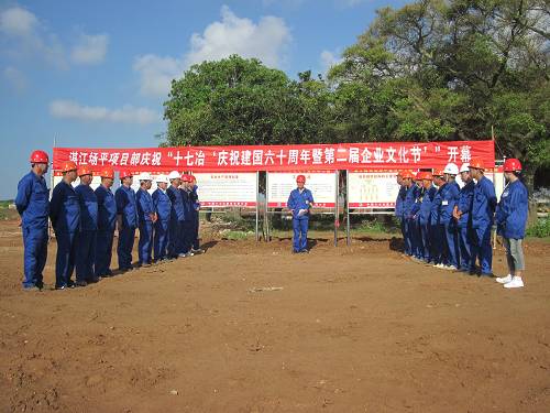 為迎接十七冶“慶祝建國六十周年暨第二屆企業文化節”開幕式的到來,凝聚戰斗力,鼓舞士氣,828日上午858分,十七冶湛江鋼鐵場地平整四標項目部與總公司同步,在戰斗一線舉行了一場特殊而有意義的慶祝儀式。項目部全體成員通過這樣一個簡短的儀式來“慶祝建國六十周年暨第二屆企業文化節”的開幕。