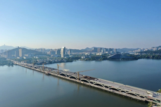 中國十七冶承建長江黃石段生態(tài)環(huán)境導向開發(fā)(EOD)項目——磁湖綠色廊道項目主體結構拱圈順利合龍