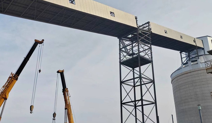 10月25日,中國十七冶房屋分公司承建的南通海門海螺新材料項(xiàng)目骨料庫至碼頭2#轉(zhuǎn)運(yùn)站兩跨鋼廊道順利吊裝完成,至此項(xiàng)目骨料中轉(zhuǎn)系統(tǒng)鋼廊道全線貫通,項(xiàng)目進(jìn)入沖刺階段。