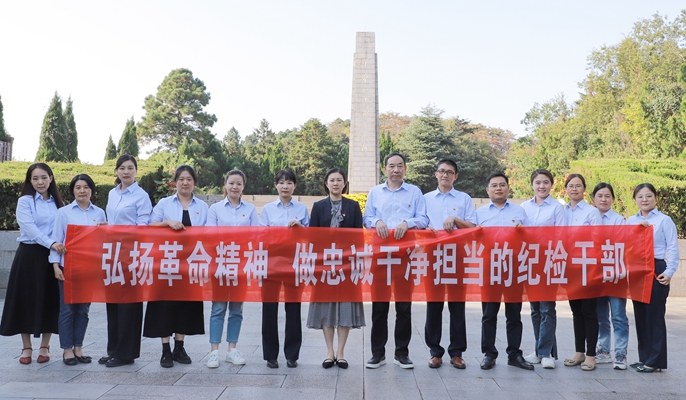 在業務學習環節,大家集中領讀了《論黨的自我革命》《習近平關于依規治黨論述摘編》《忠誠衛士—全國紀檢監察系統先進典型風采錄》等,并圍繞“堅持黨的自我革命、提高黨的執政能力、嚴明黨的政治紀律”主題,結合工作實際展開交流研討。在實地踐學環節,大家前往馬鞍山市濮塘烈士陵園開展革命傳統教育,面向黨旗,重溫入黨誓詞,堅定理想信念。