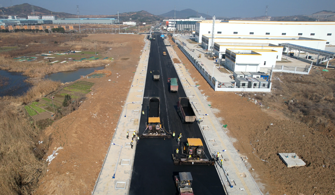 1月13日,中國十七冶房屋分公司承建的馬鞍山經開區銀塘單元路網建設項目同心路瀝青攤鋪順利完成。