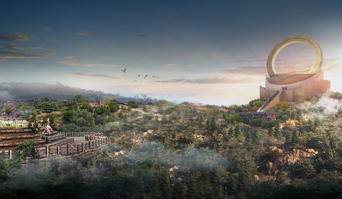 項目位于山東省日照市東港區濤雒鎮南,觀日臺位于天臺山頂峰處,海拔高度260米,高度約12米,臺上環形構筑物高度約13.5米,整體建筑高度約25.5米;觀日臺以原始祀日文化功能為立足點,巧妙融合日月星辰文化元素,布設文化標志、天文觀賞、逐日天梯等文化景觀,具有祭祀祈福、舞臺演藝、夜間燈光、科普研學等文化功能。