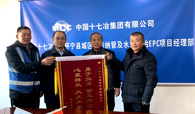 12月31日,懷寧縣寧興花園業委會一行來到中國十七冶集團管廊工程技術分公司懷寧市政工程項目部,向項目部贈送了一面印有“勇于擔當 彰顯央企本色;心系群眾 大義大愛并舉”的感謝錦旗,并同項目部人員進行了親切的交談。