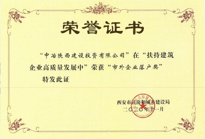 11月20日,在2019年度西安建筑業高質量發展頒獎大會上,中國十七冶集團下屬的中冶陜西建設投資有限公司榮獲全市唯一一家“市外企業落戶獎”。中冶陜投公司常務副總經理黃偉作為獲獎代表出席大會。