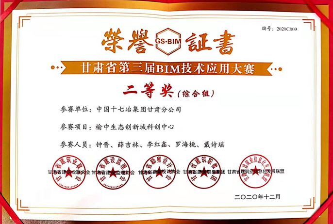 12月24日,中國十七冶集團(tuán)西北公司承建的蘭州新區(qū)瑞嶺國際項(xiàng)目二標(biāo)段工程、蘭州新區(qū)高新技術(shù)產(chǎn)業(yè)園拆遷安置房項(xiàng)目二期三標(biāo)段、蘭州新區(qū)職教園區(qū)蘭州現(xiàn)代職業(yè)學(xué)院項(xiàng)目主行政樓、省道301線海石灣至崗子溝公路川海大橋連接線工程、蘭州北繞城東段高速公路鹽場(chǎng)堡至什川連接線青白石互通立交一期工程等5項(xiàng)工程榮獲2020年度蘭州市建設(shè)工程“白塔獎(jiǎng)”。榆中生態(tài)創(chuàng)新城科創(chuàng)中心工程項(xiàng)目榮獲甘肅省第三屆BIM技術(shù)應(yīng)用大賽綜合組二等獎(jiǎng);榆中園區(qū)棚戶區(qū)改造2#安置區(qū)EPC總承包工程項(xiàng)目榮獲甘肅省第三屆BIM技術(shù)應(yīng)用大賽專項(xiàng)組三等獎(jiǎng)。