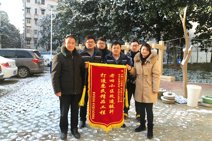 剛剛經歷大雪過后的小區,被覆蓋了厚厚一層冰雪,氣溫也隨之降到零下8攝氏度。一大早,馬鞍山梅花園社區及玉蘭園小區業委會冒著嚴寒來到玉蘭園小區廣場,向施工方十七冶項目部致謝,送上寫著“老舊小區改造提升、打造惠民精品工程”的錦旗,對項目部盡職盡責、熱心服務的工作態度給予了高度評價和贊揚。