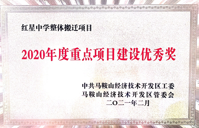 2月21日,從馬鞍山經開區管委會獲悉,中國十七冶集團房屋分公司承建的馬鞍山經濟技術開發區紅星中學整體搬遷工程項目榮獲“2020年度重點項目建設優秀獎”榮譽稱號。