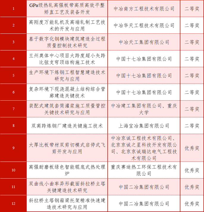 中國質量協會質量技術獎是我國質量技術領域的最高獎,于2005年正式設立,是國內質量技術領域第一個經國家科技部、國家科技獎勵辦公室批準設立的科學技術獎勵,旨在促進我國質量技術進步,提高我國整體質量管理水平、創新能力和競爭能力,調動廣大質量工作者的積極性和創造性。近年來,中國十七冶深入踐行“五大核心要義”,把創新作為高質量發展的第一驅動力,依托“國家級企業技術中心”等研發平臺,建立了“技術創新決策層、科研攻關核心層、工程建設實施層”的技術創新工作架構,形成了“專利工法化、工法標準化”的成果轉化體系,并在2023年“國家企業技術中心”評價中位列全國建筑施工行業第2位。公司將持續以實際項目為依托,持續加大技術創新和成果應用力度,為促進建筑行業質量技術進步貢獻智慧與力量。