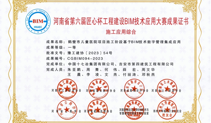 近日,河南省工程建設協會公布第六屆“匠心杯”工程建設BIM技術應用大賽結果,中國十七冶甘肅分公司鶴壁兒童醫院項目申報的《鶴壁市兒童醫院項目施工階段基于BIM技術數字管理集成應用》成果獲評大賽一等獎。