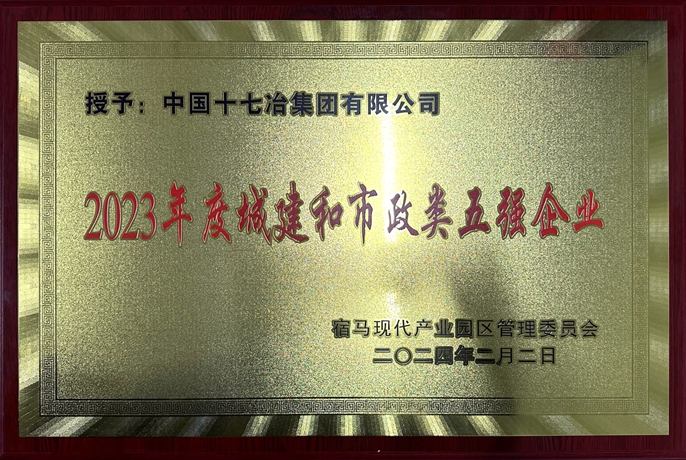 近日,宿馬現代產業園區管委會授予中國十七冶集團“2023年度城建和市政類五強企業”稱號,并致表揚信對房屋分公司宿馬片區項目優質高效推進工程建設予以肯定。