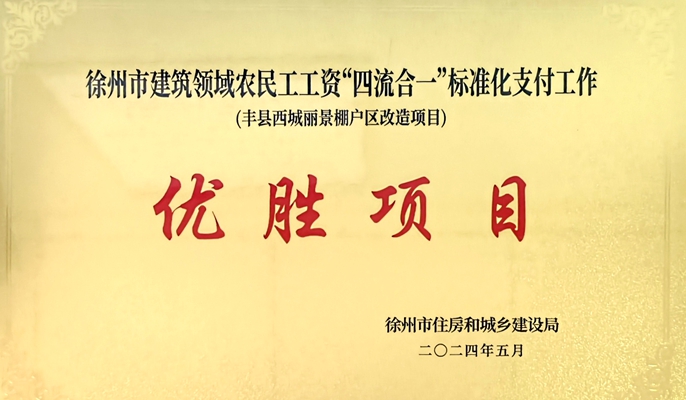 近日,從徐州市住房和城鄉建設局獲悉,中國十七冶房屋分公司豐縣西城麗景棚改項目榮獲徐州市農民工工資“四流合一”標準化支付優勝項目,中國十七冶信用評分增加1分,項目勞資員徐泊涵同志榮獲優秀勞資專管員稱號。