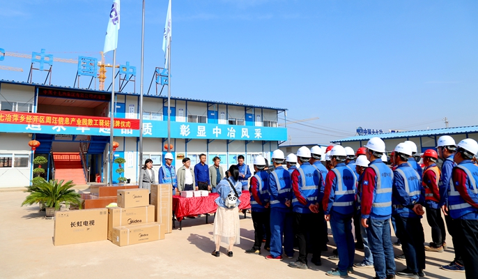 111日上午,中國十七冶集團萍鄉(xiāng)經開區(qū)周江信息產業(yè)園項目在項目部舉行“散工驛站” 揭牌儀式,萍鄉(xiāng)經開區(qū)工會專職副主席曹占華、區(qū)黨工委第二指導組組長劉紅梅、新能源產業(yè)辦主任李希斌等參加揭牌儀式,并觀摩了“散工驛站”。
