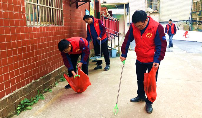 黨員同志帶領其他同志,身穿紅馬甲,拿起鐵鉗、掃把等工具,從登岸小學開始,清掃路面垃圾、處理干枯樹枝、清理衛生死角、搬運亂推亂放雜物等,同時,對周邊的居民進行宣傳,倡導垃圾分類、愛護環境衛生。參與活動的同志人人干勁十足,個個奮勇爭先,充分發揚志愿服務精神,現場呈現一片熱火朝天的景象。經過四個小時的努力,小區衛生環境得到了進一步改善,受到了周圍住戶的好評,被路過的學生親切地稱為雷鋒小隊。