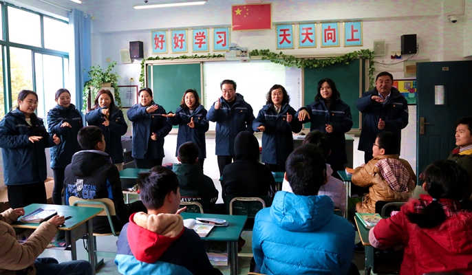 大家與孩子們在教室內通過和孩子們玩游戲、手繪存錢罐、折疊“紙鶴”等方式,親密互動,為學習和生活在學校的殘疾兒童們帶去心靈上的慰藉,一方面給特教學校學生的課余文化生活增添一份樂趣,另一方面在游戲指導、幫扶過程中,使特教學校的孩子們感受到社會、央企的關愛。孩子們用純真的笑容寄托出他們對生活的熱愛和未來的憧憬,用手語表達出對社會的感恩。