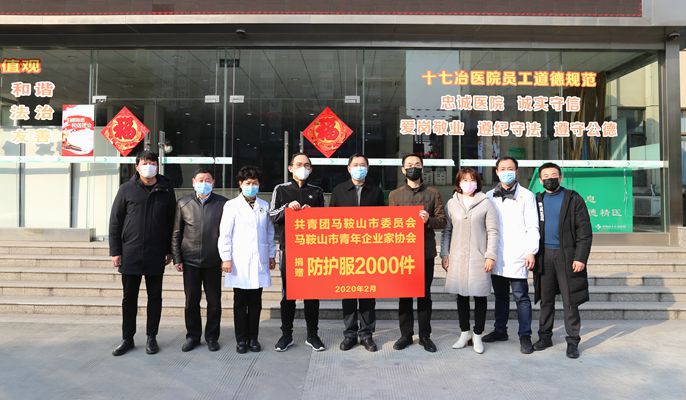 25下午,馬鞍山團市委書記馬鑫帶領部分工作人員,將2000套三級防護服捐贈給十七冶醫院,幫助醫院緩解了燃眉之急。