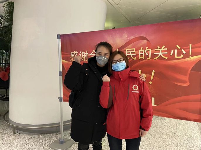 我坐動車,她乘飛機,一個在地面,一個在天空,申請接機,得到批準。坐上醫(yī)療隊大巴,花了將近1個小時時間到機場,領隊和武漢方面的接待人員笑著說,坐飛機是最高待遇了,我們第一批來得時候條件太艱苦了,但是能理解。