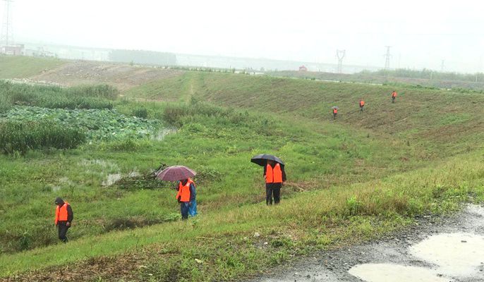 自7月26日起,十七冶工程科技公司防洪救災(zāi)隊(duì)開始了為期三天的災(zāi)情巡查工作。每天早晨6點(diǎn)半,防洪救災(zāi)隊(duì)就已完成集結(jié),于八點(diǎn)半到達(dá)當(dāng)?shù)兀噭傄宦涞兀?duì)員們便馬不停蹄的跟隨當(dāng)?shù)刎?fù)責(zé)人來到了裕溪河都勝圩段,立即展開堤壩巡查工作。