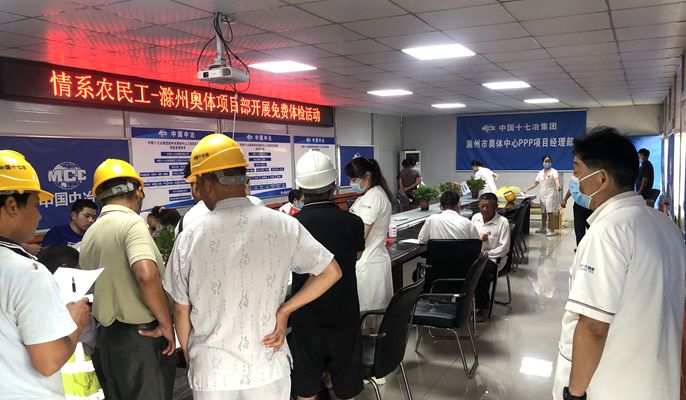 8月28日,中國十七冶集團城建分公司滁州市奧體中心項目部開展“情系農民工、體檢送健康”活動。