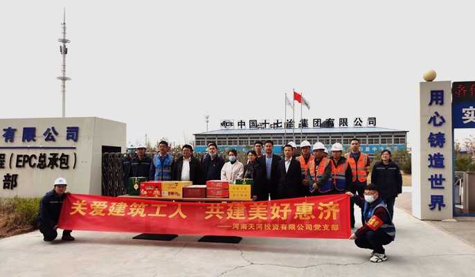 3月17日,河南天河投資有限公司總經(jīng)理馬力同惠濟(jì)區(qū)新型城鎮(zhèn)化相關(guān)人員來到中國十七冶集團(tuán)承建的鄭州市惠濟(jì)區(qū)雙橋(東)安置房工程(EPC總承包)項目經(jīng)理部進(jìn)行慰問。