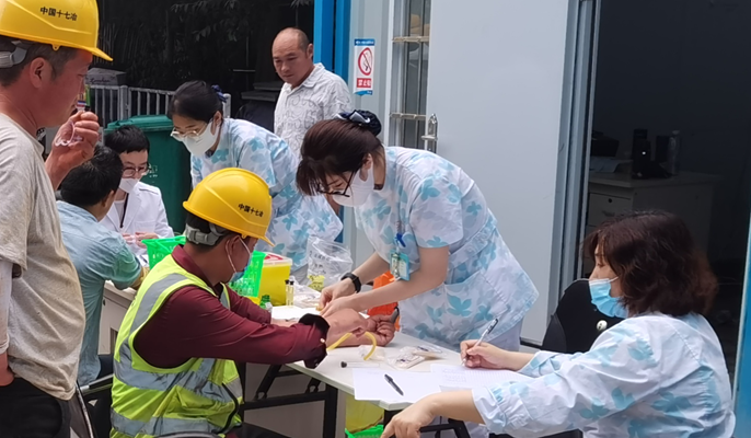 6月29日上午,中國十七冶集團(tuán)山東分公司青島市湛山廣場人員掩蔽項目、新湛三路9號住宅拆除重建項目聯(lián)合湛山社區(qū)衛(wèi)生服務(wù)站為一線作業(yè)工人進(jìn)行免費健康檢查。