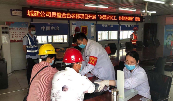 8月24日,十七冶靈璧金色名郡項(xiàng)目部開(kāi)展“關(guān)愛(ài)農(nóng)民工,體檢送健康”活動(dòng),為200余名農(nóng)民工免費(fèi)進(jìn)行健康體檢。