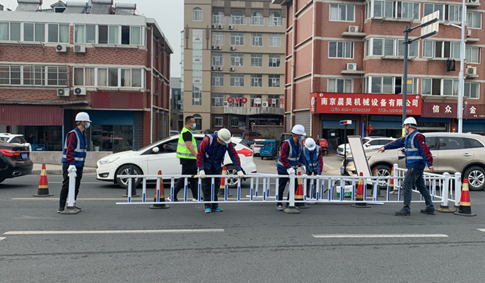 3月16日,馬鞍山發布通告,全市所有小區實施封閉式管理。在接到建設隔離帶任務后,老舊小區改造項目全體職工第一時間行動,迅速到崗就位,聽從指揮,開展工作,對小區進行封閉圍擋施工。接到任務僅10分鐘,項目經理王慶壘迅速與政府、社區積極對接,將防疫方針政策向100多名自愿“參戰”志愿者傳達。晚上5點,志愿者們便已快速響應分布到各個作業點位,開始隔離帶設置施工。