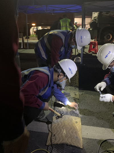 修建結束,天色漸濃。“你們這里沒有準備照明燈具嗎?”“沒有呢,這個站點剛剛建起來,還沒來得及配套。”看著防疫工作者用著簡易臺燈和手電筒辛苦地在黑夜里值守,十七冶的志愿者們決定“順手”為防疫站點添置一些照明燈具。16日的夜晚溫度驟降,頂著凜冽的寒風,小伙子們一寸一寸地將電線嵌裝到減速帶下,最終為防疫站點點亮了盞盞明燈,不僅照亮著道路,同樣也溫暖著人心。