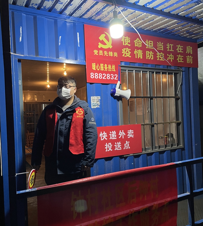 志愿者團(tuán)隊(duì)聞令而動(dòng),到崗后迅速進(jìn)入工作狀態(tài),參與體溫監(jiān)測(cè)、通行證檢測(cè)、卡點(diǎn)值守等各項(xiàng)疫情防控工作,每天16小時(shí)2班倒,輪班輪崗支援社區(qū)防疫工作。志愿者們?cè)谧龊眯^(qū)大門防守工作的同時(shí),向出入小區(qū)居民宣傳防疫相關(guān)知識(shí),測(cè)量體溫,引導(dǎo)居民自覺掃碼登記,辦理居民出入通行證。對(duì)未接種加強(qiáng)針疫苗的居民詳細(xì)登記,動(dòng)員其盡早接種疫苗,確保科學(xué)防疫措施落實(shí)到位。夜晚寒風(fēng)凜冽,晚班執(zhí)勤人員堅(jiān)守到夜里11點(diǎn),大家依舊毫無怨言。在疫情防控工作中,志愿者團(tuán)隊(duì)不懼寒冷,各司其職、各盡其責(zé),堅(jiān)守在執(zhí)勤崗位,與“大白”共同戰(zhàn)一線,為社區(qū)疫情防控筑牢防線。
