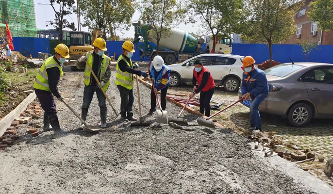 合肥市瑤海區(qū)樅陽(yáng)路與團(tuán)結(jié)路交叉口,臨近項(xiàng)目西側(cè)的仙居苑西村小區(qū)內(nèi),部分場(chǎng)地因綠化退化成為泥土路面。考慮到小區(qū)內(nèi)住有眾多老人,雨天出行非常不便,極易發(fā)生安全隱患。發(fā)現(xiàn)這一情況后,項(xiàng)目黨支部上門(mén)搜集民情民意,深度了解、全面梳理了紅光街道仙居苑西村小區(qū)地勢(shì)低洼、地面堆積生活垃圾等問(wèn)題,在社區(qū)黨支部的協(xié)助下廣泛征求小區(qū)居民意見(jiàn),繪制規(guī)劃場(chǎng)地圖紙,科學(xué)布置,并聯(lián)合合肥寶地產(chǎn)城發(fā)展有限公司黨支部、社區(qū)黨支部和物業(yè)公司全程參與進(jìn)行場(chǎng)地硬化施工,建成小區(qū)道路,便捷了小區(qū)居民的出入通行,得到了社會(huì)上的高度認(rèn)可。