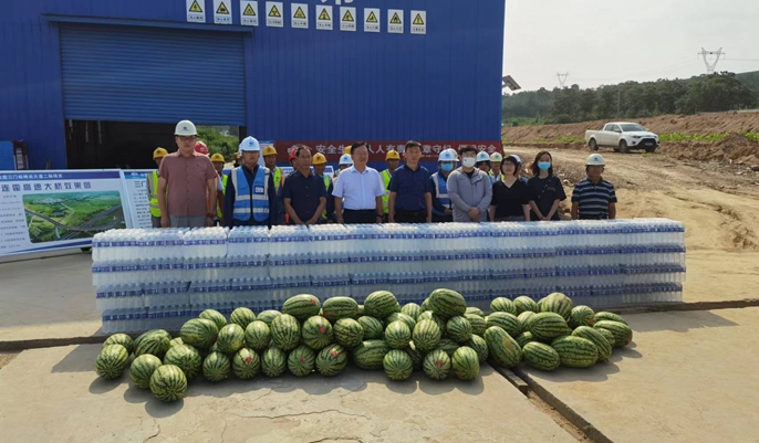 王廣峰副主席一行來到梁場、三張路口等地,詳細詢問項目施工進度,了解工地避暑措施,走訪慰問在高溫酷暑下堅守崗位、辛勤勞動的工作人員,并為他們送上礦泉水、西瓜等夏季防溫降暑物資。王廣峰副主席表示,開展向一線職工“送清涼”活動,是關心職工生活,落實以人為本,促進安全生產的重要舉措,項目部要積極擔當社會責任,在抓好工程進度和施工安全的同時,把防暑降溫工作落到實處,要積極采取防暑降溫相關措施,合理安排作息時間,切實保障一線工作者的身心健康。
