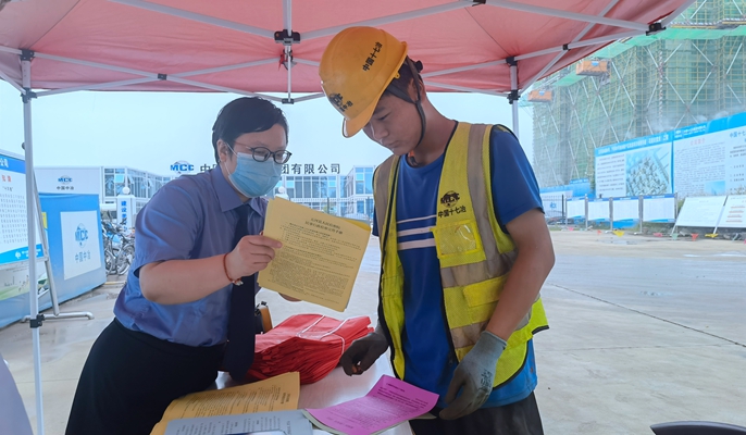 為保障農民工的的合法權益和切身安全,維護好五河項目民生工程建設,8月29日下午,五河縣人民檢察院同縣人社局走進中國十七冶承建的五河縣花園安置房項目工地進行普法宣傳。