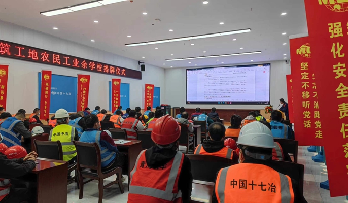 為進一步提升農民工的職業技能及綜合知識水平,助力廣大工友職業成長和個人發展,10月21日上午,西安市建筑工地農民工業余學校在中國十七冶集團陜西分公司承建的西安交通大學第一附屬醫院國際陸港醫院項目正式揭牌。中國十七冶集團陜西分公司紀委書記、工會主席楊希濤及業主、監理單位代表、項目管理人員、農民工代表等60余人參加了活動。