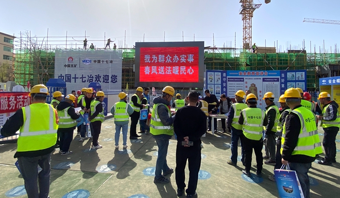 4月7日,中國十七冶建筑分公司金昌市金川區(qū)2#區(qū)棚戶區(qū)改造項目邀請金昌市人社局、司法局、住建局及總工會工作人員到項目現(xiàn)場,開展“勞動權(quán)益保障、法律援助進工地”活動。