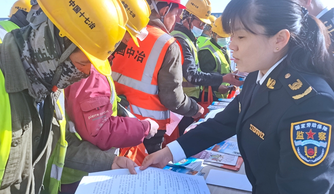 活動現場,工作人員通過向工友們發放法制宣傳冊等方式,重點宣講了《民法典》《憲法》以及與勞務人員密切相關的《勞動合同法》《安全生產法》《保障農民工工資支付條例》等法律法規,用通俗易懂的語言與平易近人的語氣和工人們面對面交流,耐心為工友們解讀與自身利益密切相關的勞動合同、工傷賠償、討薪、社會保險、安全生產等法律知識,有效引導工友們學法、守法、用法,“零距離”增強了工友們的法律意識。