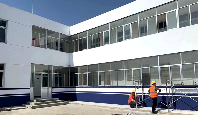 榆中縣夏官營鎮派出所營房因使用年限高、風雨侵蝕致使外觀陳舊、墻體霉變、標識模糊,內部設施也嚴重老化。項目黨支部在了解情況后,聯系派出所并提出幫助進行修繕改造。改造前期,項目黨支部技術人員多次實地考察,了解派出所實際需求,結合實際、精心策劃,科學制定改造方案、精心計算粉刷面積、合理調配施工力量。項目部共完成對破損墻面修補、粉刷工作共計一千余平方米,修繕后的墻面煥然一新,得到警民們的交口稱贊。