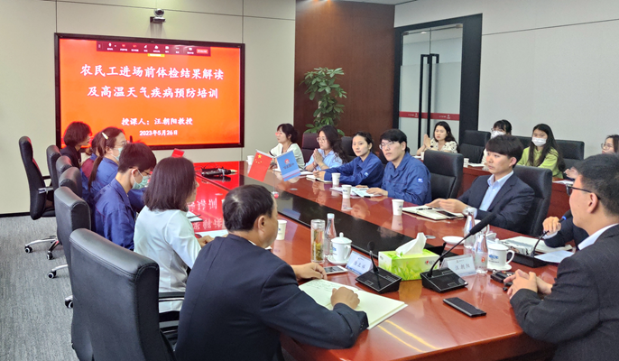 培訓會上,授課老師結合十七冶項目日常作業環境情況,深入淺出地分析了包括物理檢查、化驗檢查、心電圖等在內的體檢結果對項目作業工種選擇、誘發職業病的影響,并從夏季作業的特點、中暑癥狀、中暑的原因分析、夏季高溫作業安全要點、中暑的預防和急救知識等方面進行詳細講解。此次培訓理論結合實際,進一步提高了大家對職業健康、防暑降溫工作的認識,增強了項目部的防范意識和應急處置能力。
