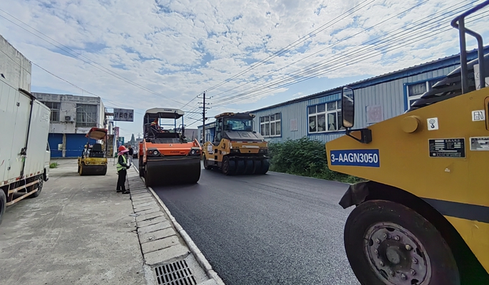 5月28日,經(jīng)過(guò)一天的努力,馬鞍山市三臺(tái)國(guó)際裝飾大世界一條長(zhǎng)約450米的道路完成瀝青鋪設(shè),原來(lái)破碎的砂石路被平整的瀝青路所取代。