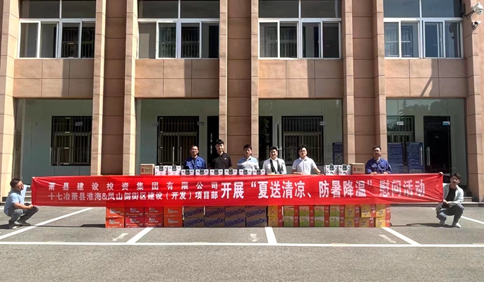 6月9日上午,中國十七冶南京分公司蕭縣淮海西路與鳳山路交叉口東北側街區建設項目,聯合蕭縣建設投資集團,到蕭縣龍河街道開展“夏送清涼、防暑降溫”活動。